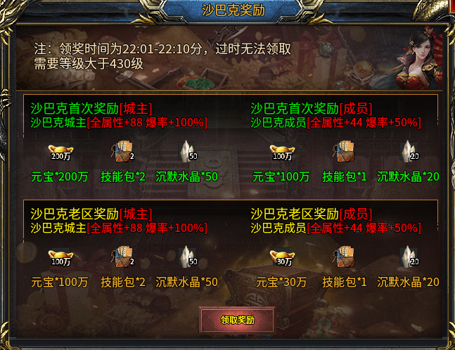 7.游戏活动,本服活动分每日活动,合区活动,每周活动,等等,活动奖励异常丰厚,且活动绝对公平,优先考虑散人玩家!